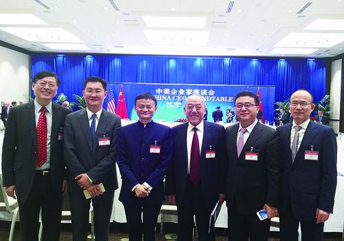 參加中美企業(yè)家座談會的部分中國企業(yè)家(左一為楊元慶)