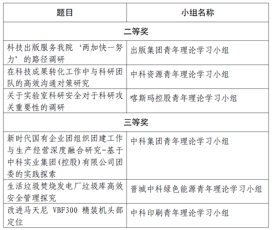 相關鏈接:中國科學院2024年青年理論學習小組“關鍵小事”調研攻關活動優(yōu)秀成果獲獎名單